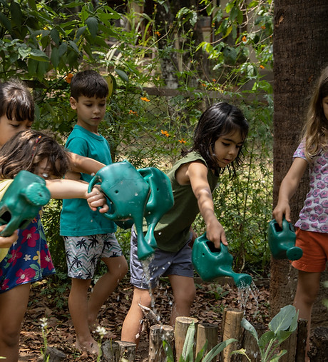 Aulas de Ecologia, Minhocários, composteiras e hortas, Construções com técnicas sustentáveis, A Permacultura, Plantio das PANC’S, Rodas de fogueira, Regas das plantas e o Plantio de Água.